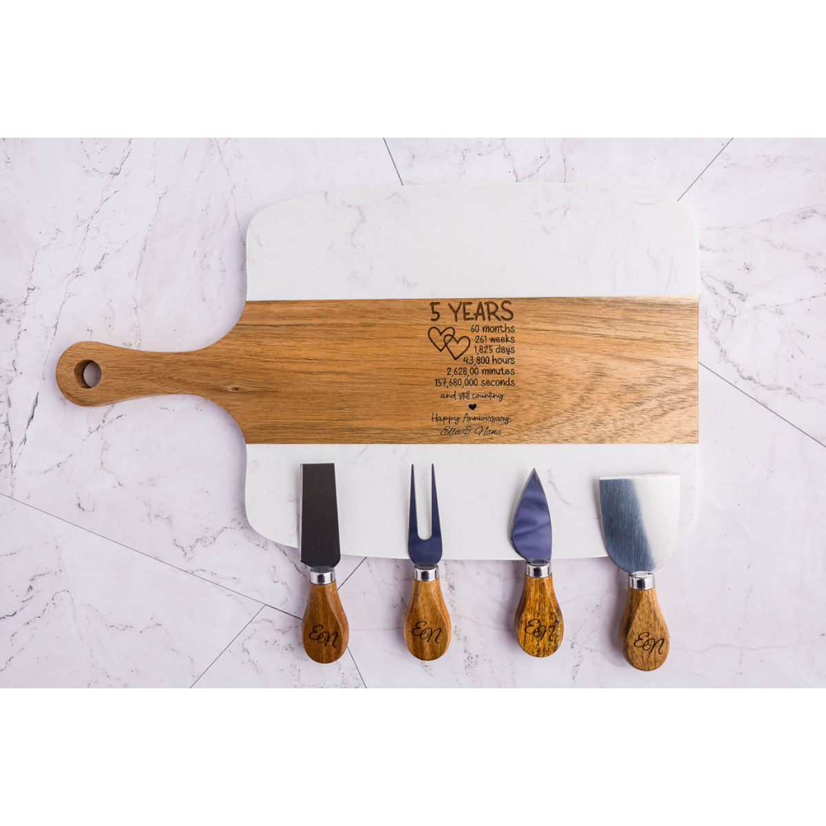 Personalized Marble & Acacia Charcuterie Board Set